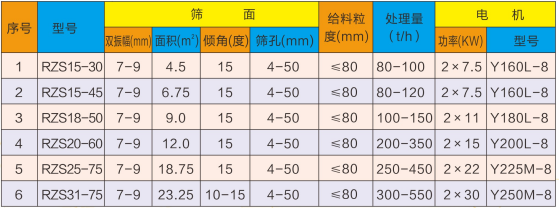 RSZ系列热矿振动筛均为座式安装。采用双轴激振器,电机不参振,当两台电机做同步、反向旋转时,其激振器偏心块所产生的振动力在平行于电机轴线的方向相互抵消,在垂直于电轴的方向叠加一合力,因此筛机的运动轨迹为一直线。两电机轴相对筛面在垂直方向有15度倾角,在振动力和物料自重力的联合作用下,使物料在筛面上被抛起跳跃式向前作直线运动,以理匹配筛网达到筛分的目的。